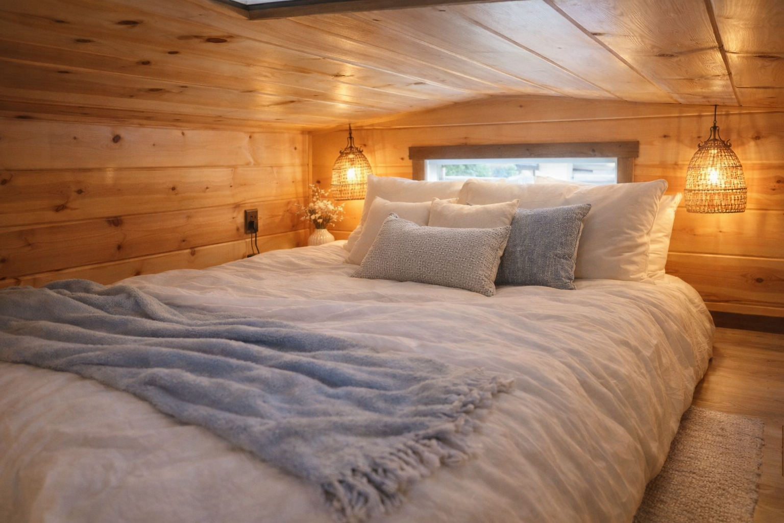 We’ve thoughtfully designed every detail to make your stay relaxing, comfortable, and wonderfully cozy from the moment you arrive. Enjoy comfortable sleeping for up to 4 guests with a queen-size loft bed and a daybed with trundle. Your furry family members are always welcome to join the adventure. The fully equipped kitchen and charming breakfast nook are perfect for preparing and enjoying meals. Fresh linens, plush towels, and soft blankets ensure you feel pampered and at ease.